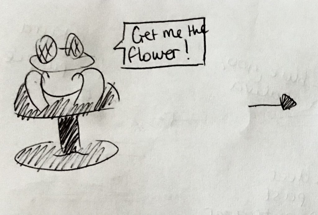 The frog will pretend to think that the player meant the lower ledge after it gets the flies – it will then ask the player to fetch it a special, one-of-a-kind flower