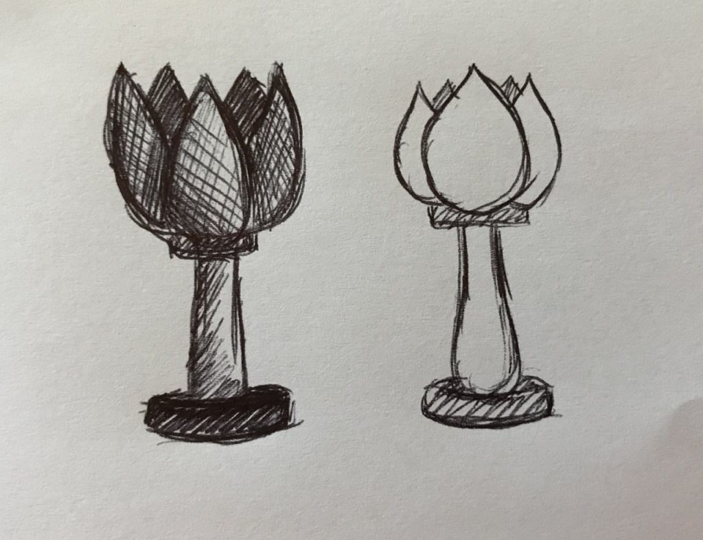 Shown below is are two sketches of the lotus lantern – the first one was drawn without a reference whilst the second one was drawn using the image beside it as a reference. The image is from the movie ‘Lotus Lantern’, which features a lotus-shaped lantern that glows using glowflies as its source of light.