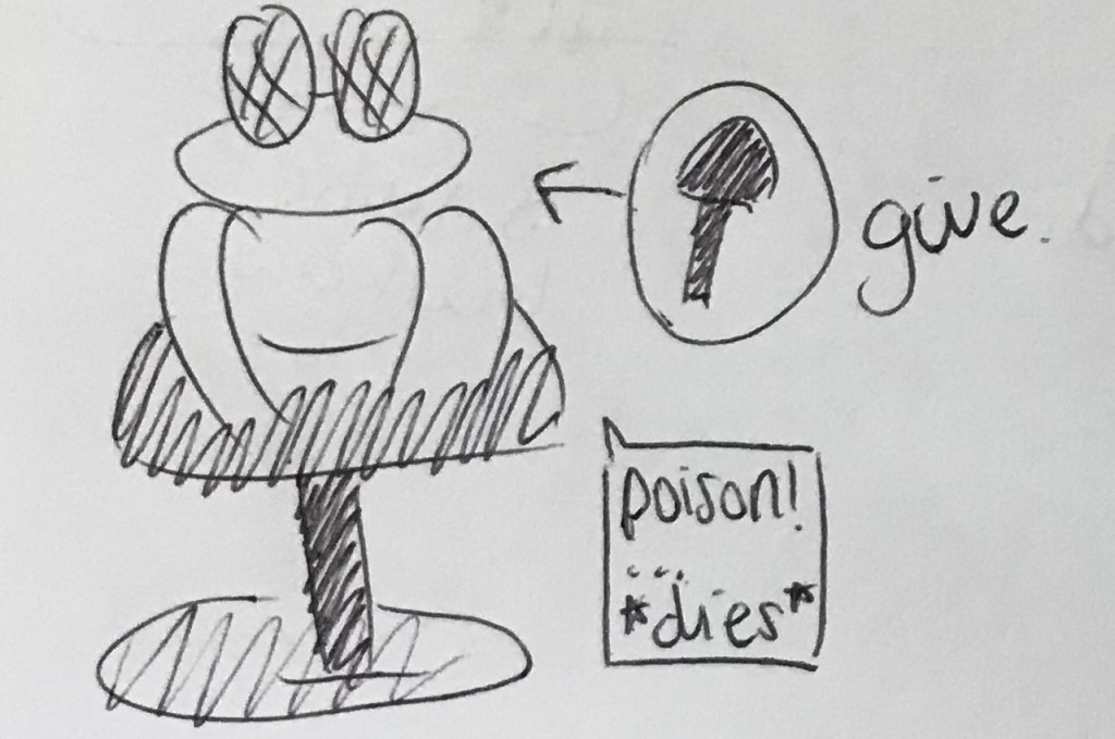 The player must give the poisonous mushroom to the spider – the spider will then give the player the good mushroom