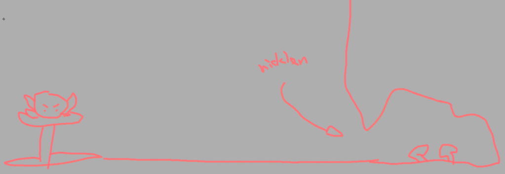 This meant that we only needed one quest in the scope. We chose the second frog quest, i.e. the mushroom quest, because it was the most important one – it allows the player to complete the level. Consequently, the environment was reduced to the frog pond and the snake burrow. However, we decided that the snake burrow was an unnecessary environment if its only goal is to hide the mushrooms. Furthermore, it hasn’t been designed/drawn yet so we decided to cut it from the final scope. This left the issue of where the mushrooms would go if not in the burrow. They needed to be hidden. We entertained the idea of having the mushrooms be in the crystal cave since it was already designed and partially drawn but the crystal cave was deemed as unnecessary due to it containing too much arbitrary detail. Then, we discussed how it could just be a simple cave but that seemed to also be unnecessarily adding a new environment to the scope.