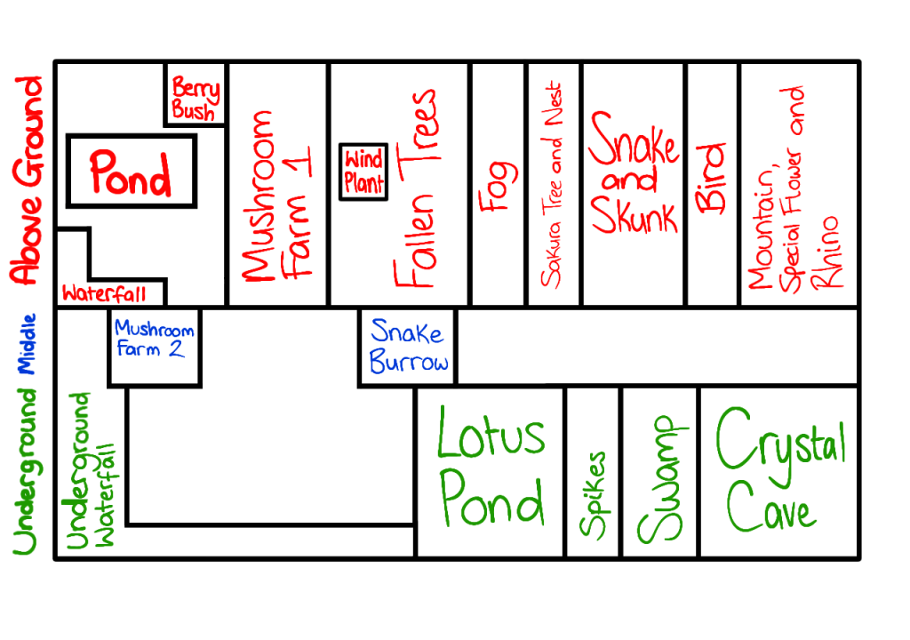 Next, we divided the areas into three sections – above ground, below ground and underground – as a method of deciding on the distribution of the different areas in regards to the three environment levels.