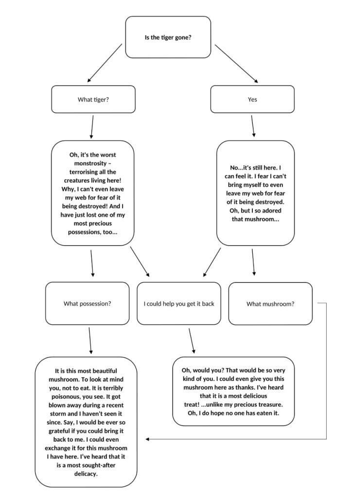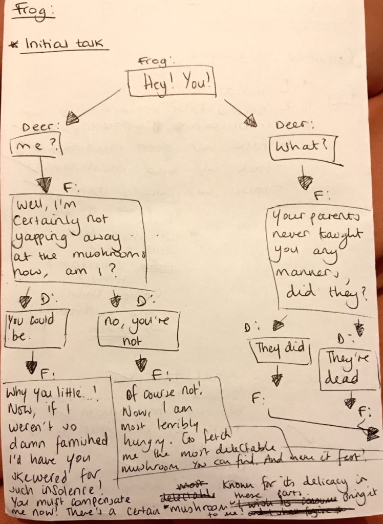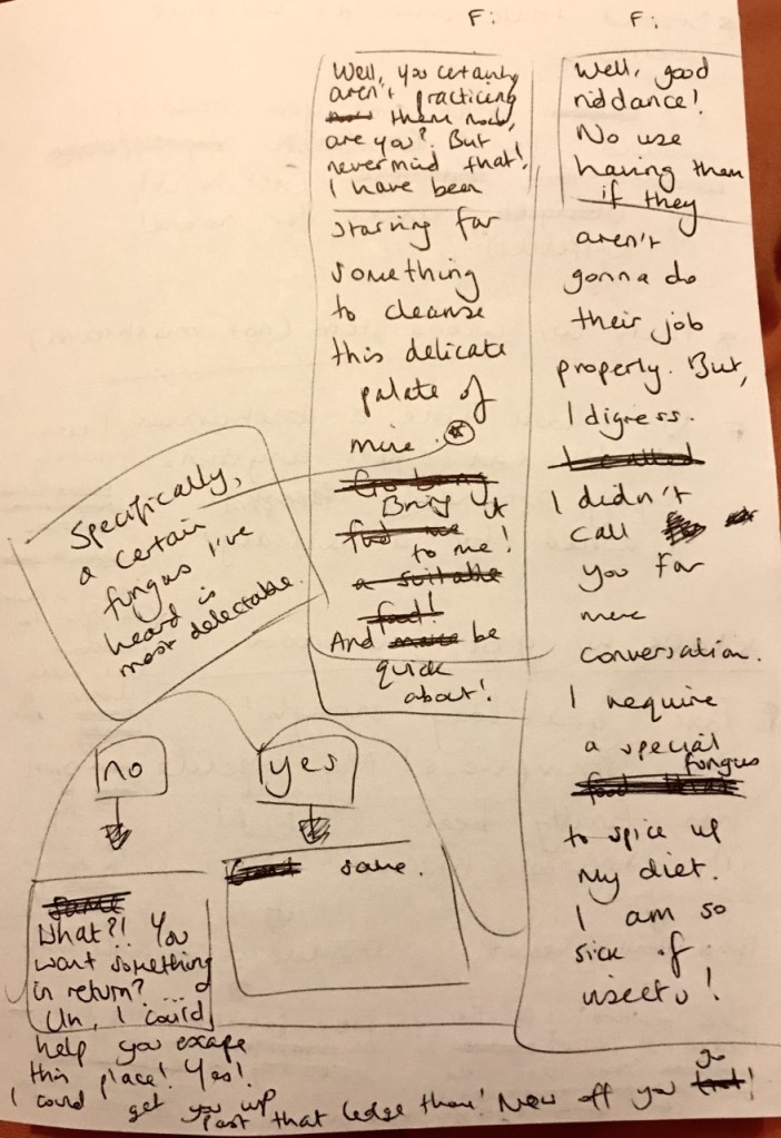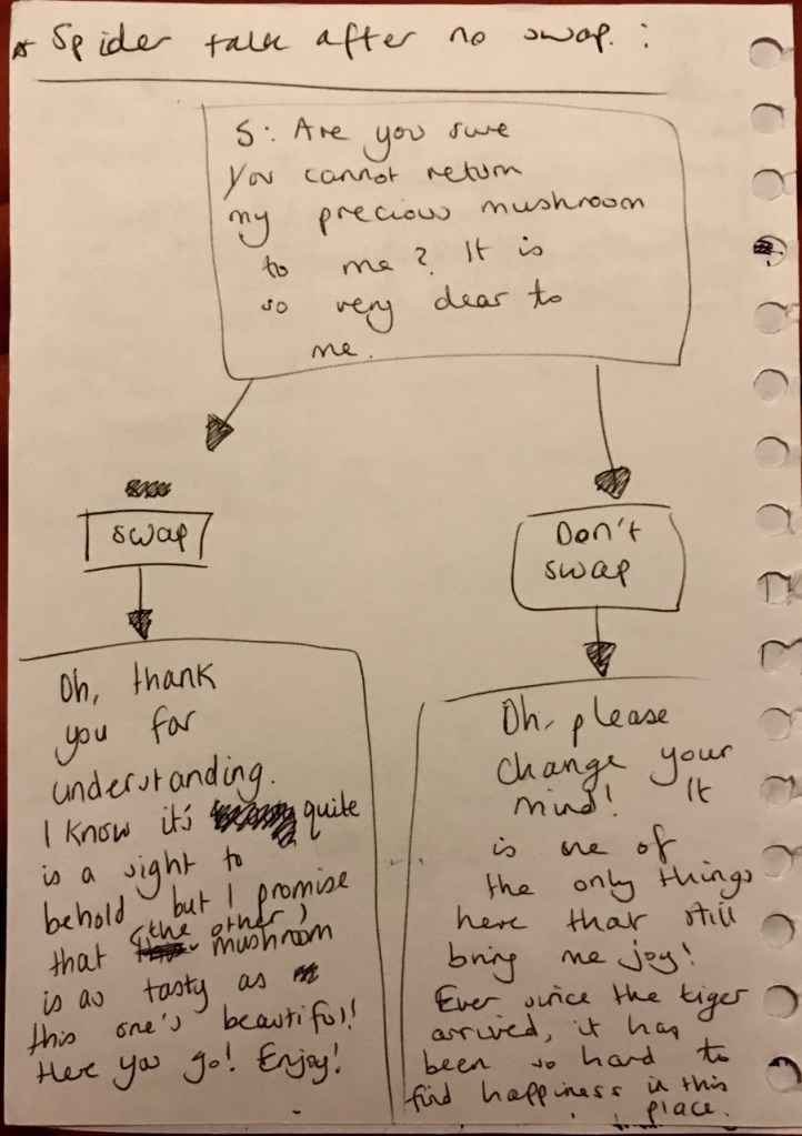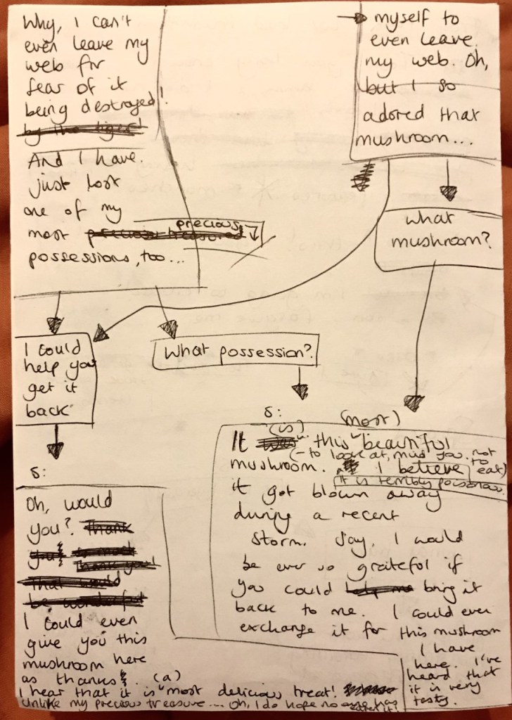 After drafting out the new dialogue, I digitised the dialogue in flowchart form using Word to make it easier to read.