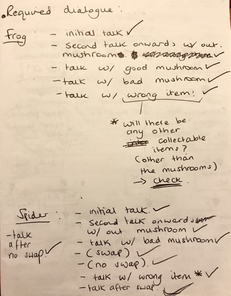 Before making the new dialogue for the new project scope, which was discussed in Team Meeting 10, I made a list of what dialogue I needed to create.